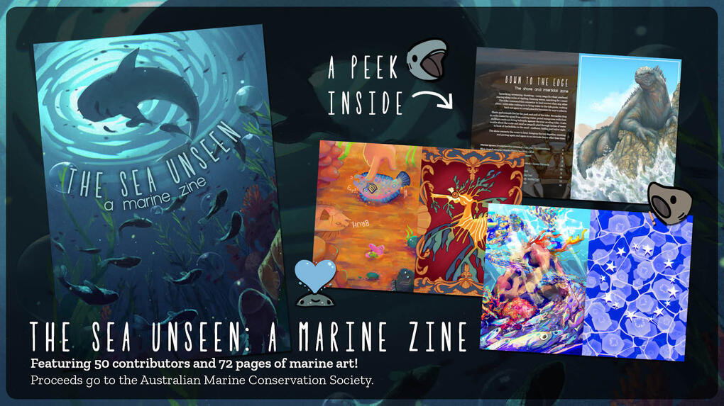 The Sea Unseen: A Marine Zine is a charity zine supporting the Australian Marine Conservation Society, released in conjunction with World Ocean Day.So far, we have released three issues. Check out the links below to find out more about them. We thank all our artists and buyers for their support!